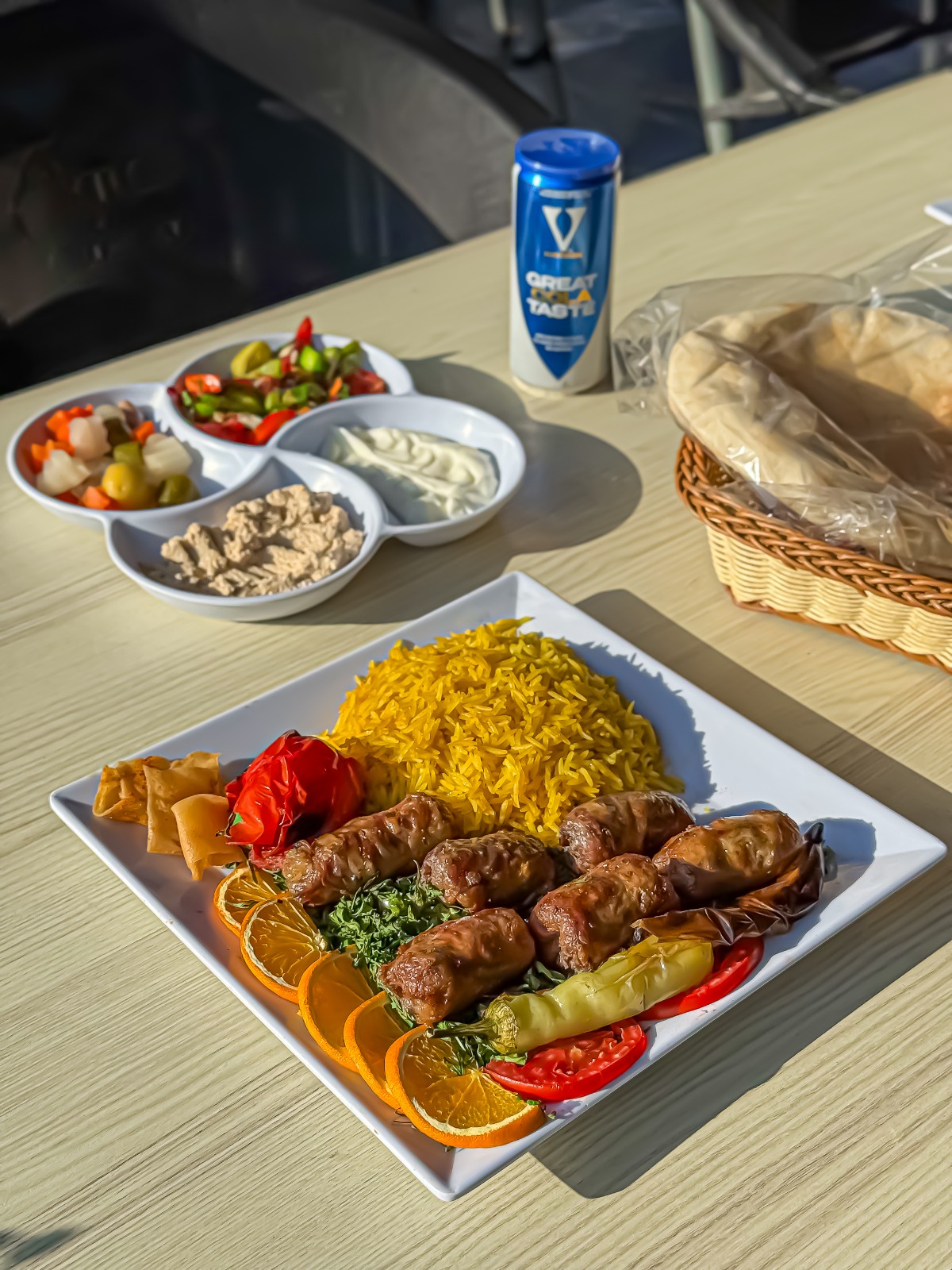 يقـــــــدم مع جميــــــــع الأوزان “أرز + طحينه + سلطة + مخلل + عيش + بابا غنوج “